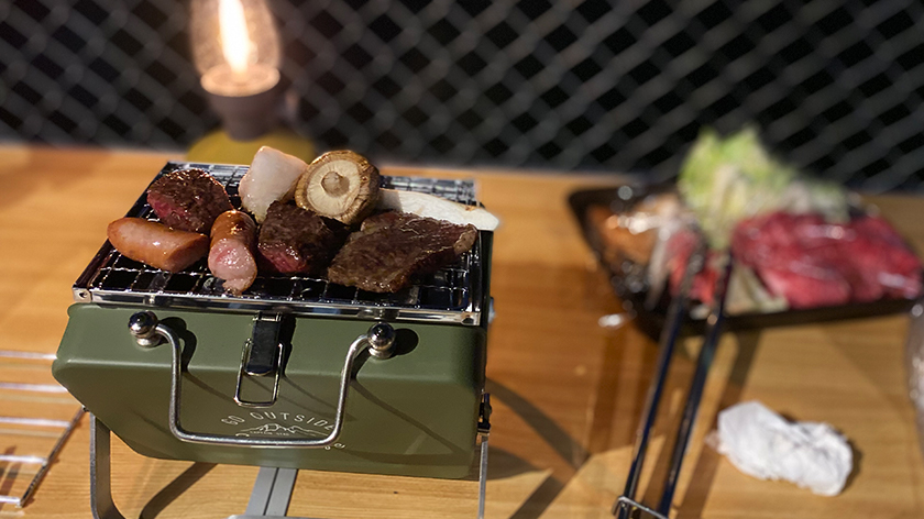 閉じていると弁当箱サイズ、開くとBBQグリルに。よく考えるなぁ…。
