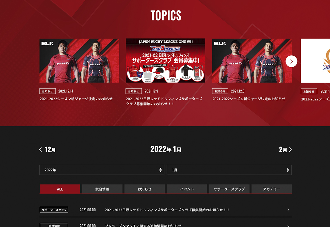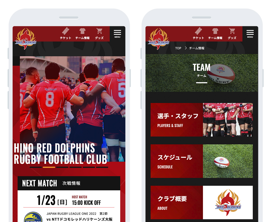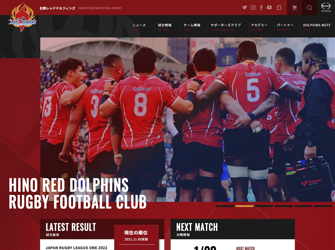 プロラグビーチーム「日野レッドドルフィンズ」様のWebサイトを制作させていただきました。