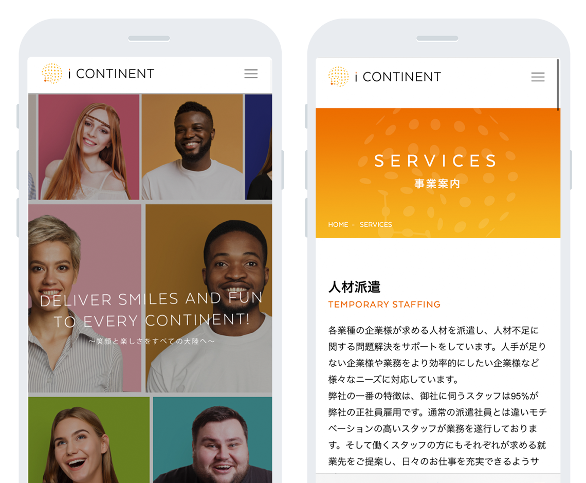 i CONTINENT(アイコンチネント)株式会社様コーポレートサイトを制作をさせて頂きました。リニューアルにあたり、ロゴや印刷物も一新しました。