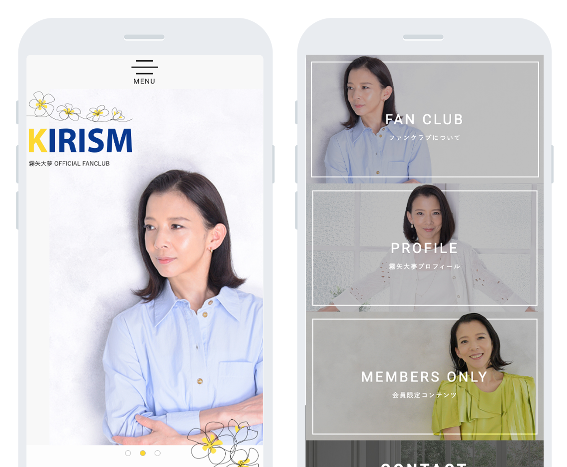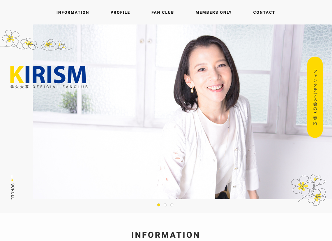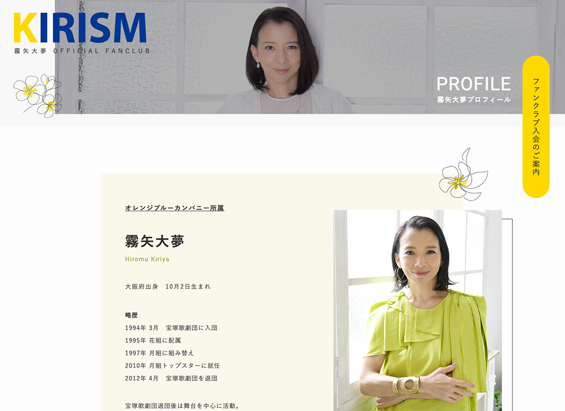 元宝塚歌劇団の女優「霧矢大夢(きりやひろむ)」様のファンクラブサイトを制作させていただきました。会員限定のコンテンツはファンクライブ会員のみ閲覧できるようになっています。
