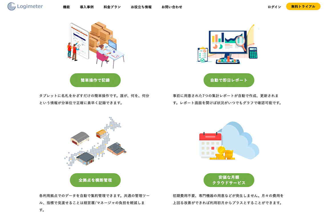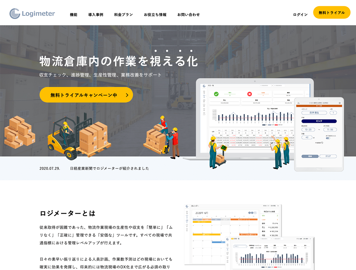 物流業務の倉庫内作業を可視化するアプリ「ロジメーター」の新規Webサイトを制作させていただきました。