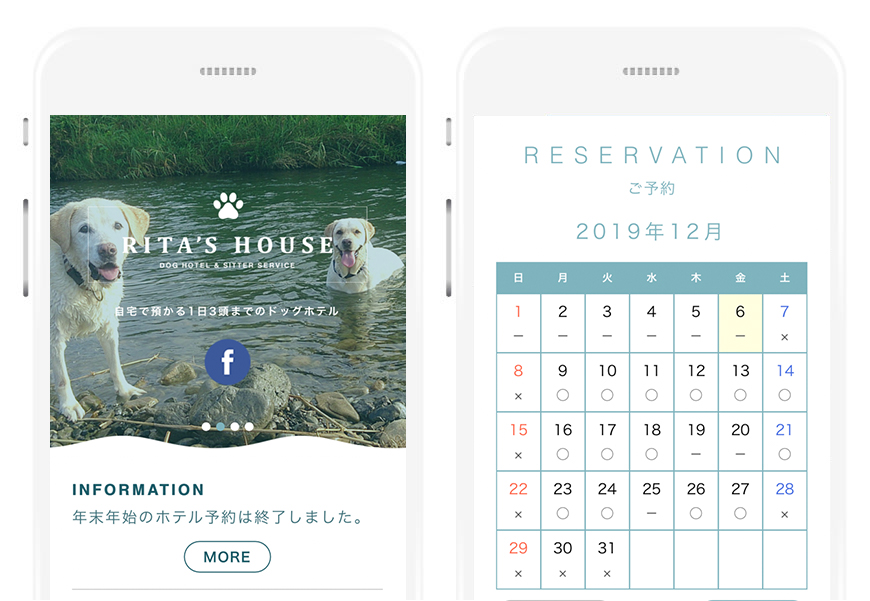 RITA'S HOUSE様 Webサイト制作。予約ページには予約状況が分かるカレンダーを導入しました。