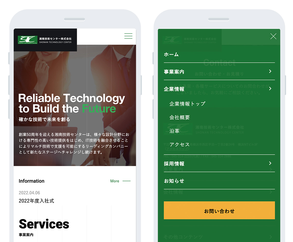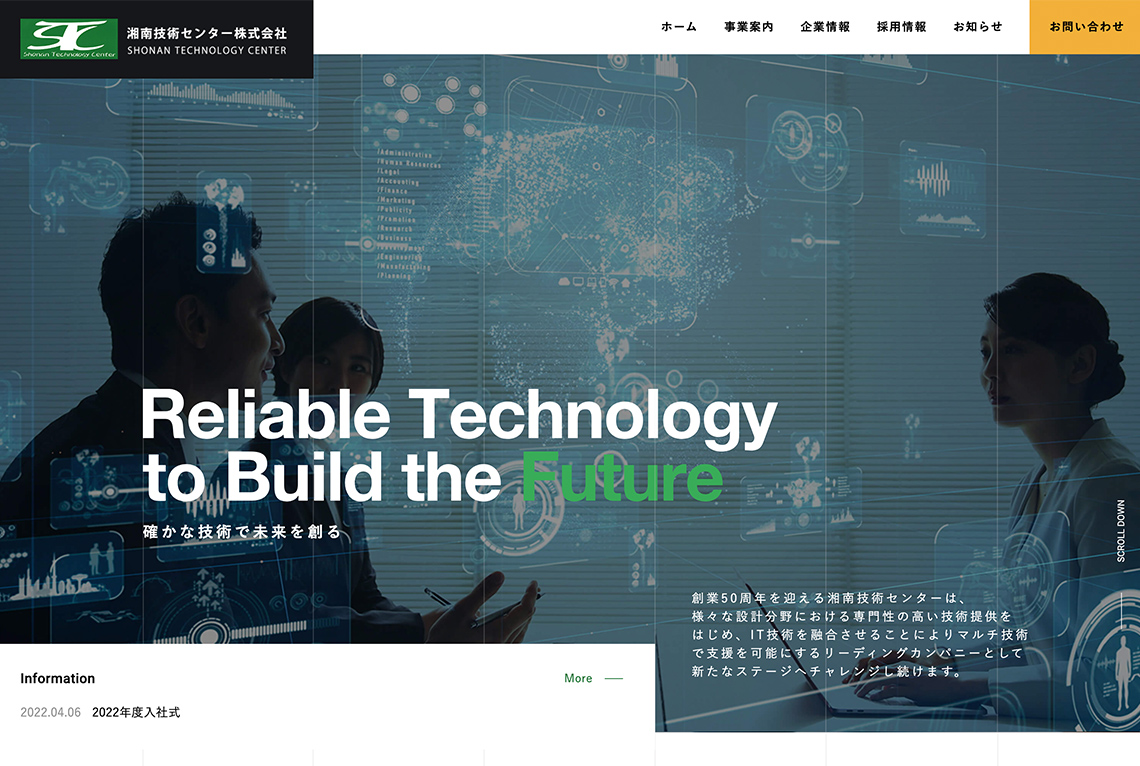 湘南技術センター株式会社様のWebサイトリニューアル。WordPressで構築し、お知らせや採用情報などは管理画面から更新していただけます。